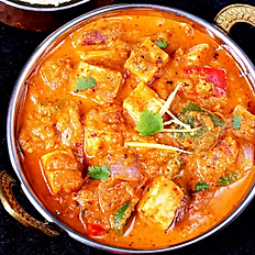 Spicy flavorful South Asian cheese dish cooked in a creamy tomato base and fragrant fresh spice blend. Served with naan, salad & chutney.